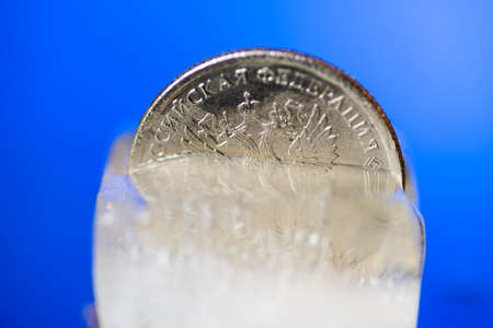 Coin One Russian ruble in a piece of ice