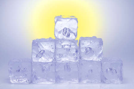Several ice cubes are piled to a mountain.