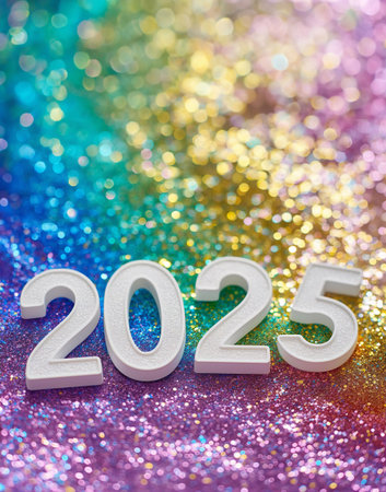 Vibrant 2025 number on clear white backdrop for futuristic designs and new year themes
