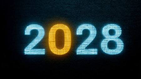 Glowing Digital 3D Numbers 2028 in a Futuristic Style on a Dark Digital Abstract Background
