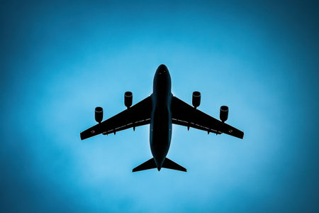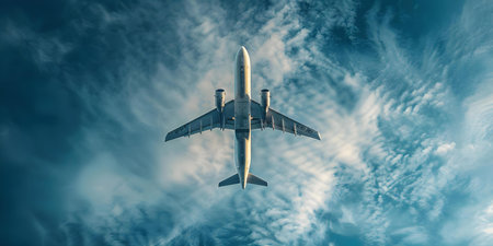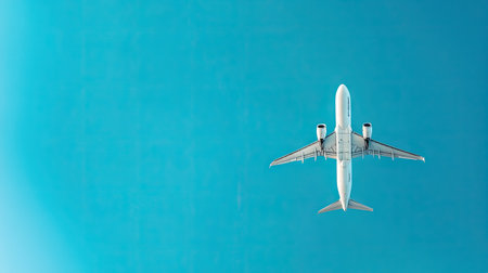 A Symbol of Freedom: A Large Airplane Soaring through a Serene Blue Sky. Concept Freedom, Airplane, Blue Sky, Serene, Symbol