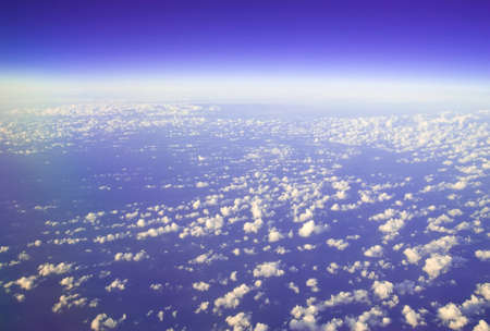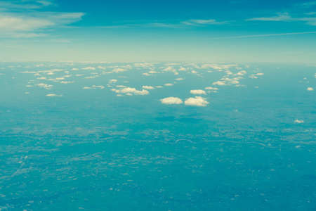 Sky on a cloudy day, the view from the plane in sweet tone.