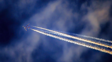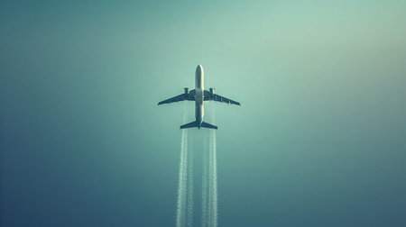 A majestic airplane soaring high in a clear sky, leaving a trail of condensation, symbolizing travel and freedom.