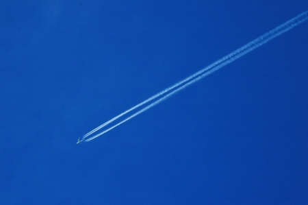 Airplane trail in the blue sky