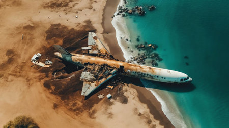 Generative AI : Aerial view of wreckage of the ship IbragimYakim in Black sea near Cape Terkhankut Olenevka Crimea republic Russia