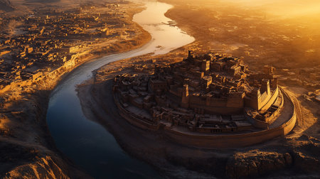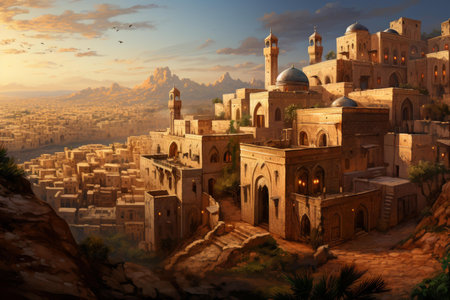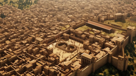 3D CG rendering of panoramic view of ancient city.