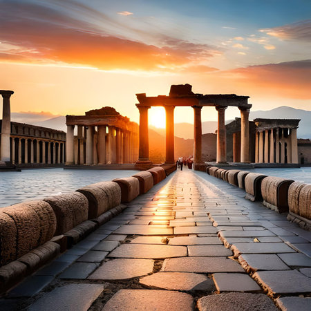 A breathtaking sunset over the Acropolis in Athens, Greece. The golden hour casts a warm glow over the ancient ruins, highlighting their impressive architecture.