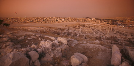 The Ruins of the citadel Jabel al Qalah in the City Amman in Jordan in the middle east.