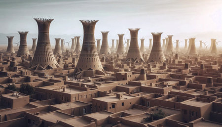 The iconic Persian Windcatchers Badgirs, AI generated image