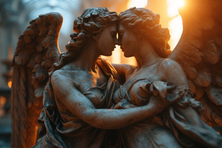 A beautiful statue of angels playing music with a guitar. Perfect for adding a touch of heavenly harmony to any creative project.
