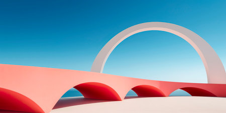 Minimalist architecture with white arches against a vibrant blue sky, creating a serene and modern atmosphere perfect for inspirational themes