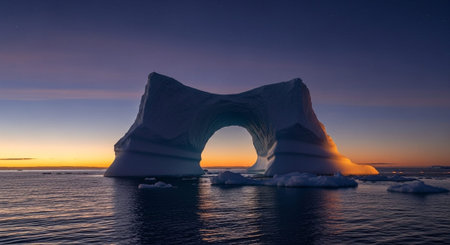 3d illustration of an arch in the sea at sunset. Concept of travel, vacation, tourism