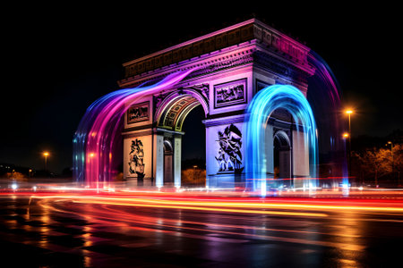 Arc de Triomphe, Paris, France, Integrated into a Digital Network of Connections, at Twilight