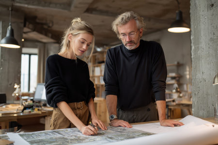 Young architect consulting project with senior client.