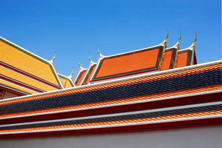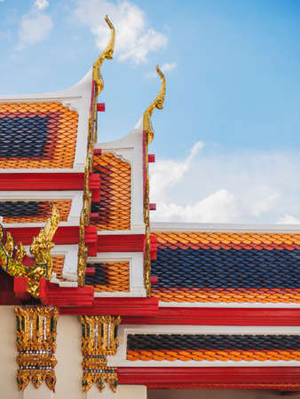 Decorative roof closeup of a buddhist temple in Wat Pho complex in the Phra Nakhon district in Bangkok, Thailand