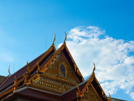 Gabled roof temple and blue sky in thailand