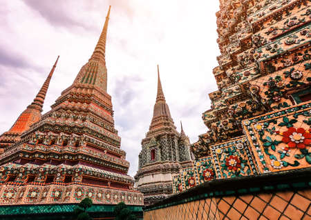 BANGKOK, THAILAND -July 6, 2019: Pagoda of King Rama Dynasty in Wat Pho or “Temple of the Reclining Buddha†is one of Bangkok's most attractive temples, Bangkok, Thailand