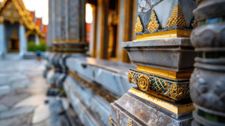 Explore the intricate details of a majestic temple structure bathed in warm sunlight. This stunning architectural piece showcases historical significance and cultural richness.