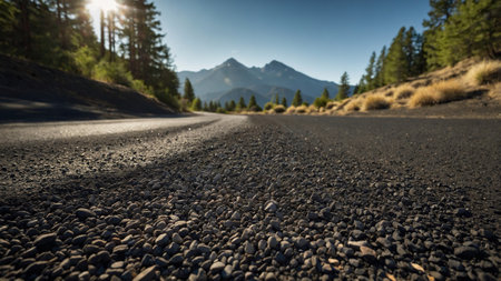 Immaculate asphalt road, captured in close-up, with a sleek and clean surface, perfect for transportation or roadway visuals