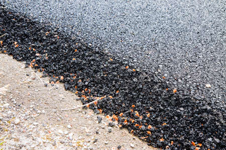 Part of fresh asphalt close-up. Construction and repair of roads.