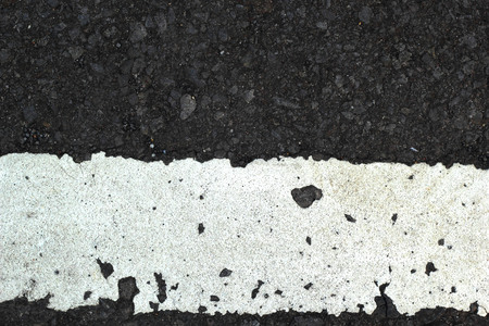 Detailed view of an asphalt road showing its rough texture and a dark lane marking, used to guide drivers during travel.
