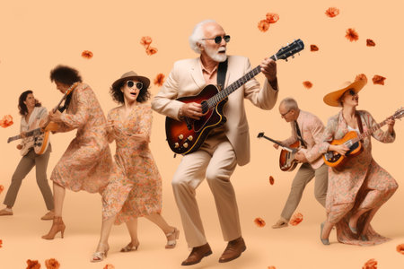 Harmonious Rhythms: Grandad's Guitar Strums Embrace Summertime's Dance in an Abstract Collage