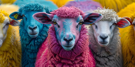 Stand Out in the Crowd: Vibrant Festival Sheep Colorful Painting. Concept Festival Fashion, Vibrant Colors, Unique Creativity, Artistic Expression, Eye-Catching Designs
