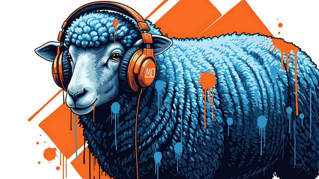 Sheep listening to music. Vector illustration of a sheep in headphones.