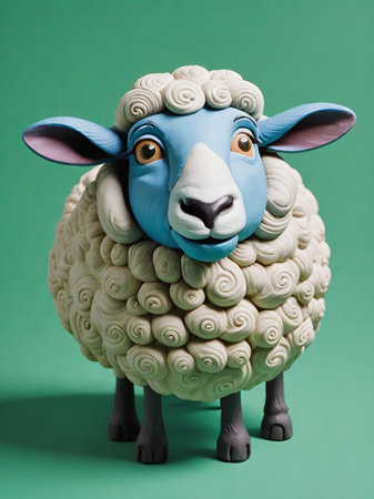 Cartoon sheep with fluffy wool and little horns on a monochrome background in 3D style, genetated by ai