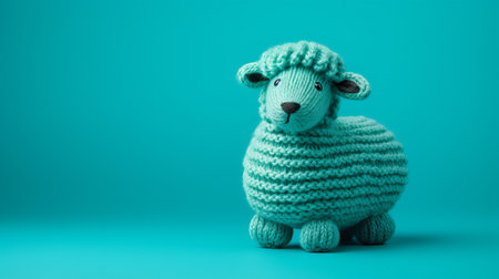 a knit lamb, with soft and rounded forms, stands on a vibrant turquoise background. the monochromatic depth enhances the object-oriented style, while bold chromaticity adds a striking touch. this adorable lamb brings to mind the artistic influences of snailcore, carl kleiner, and striped patterns. ai generated