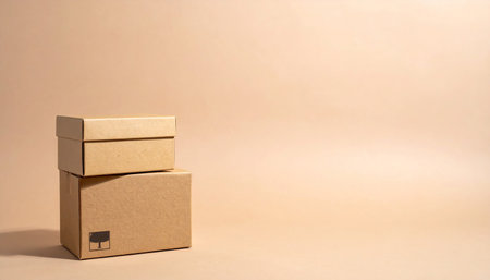 Brown cardboard boxes on a beige background. Copy space for text.