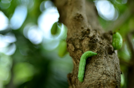 Green Caterpillar and Bilimbi (Averrhoa bilimbi) on tree