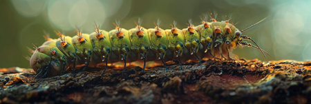 Caterpillar Crawling on a Log. Concept Nature Photography, Wildlife Close-up, Macro Shots