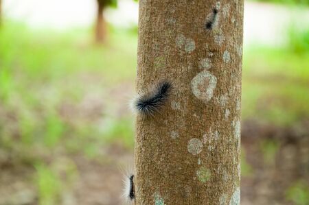 Worm on the rubber tree in the farm
