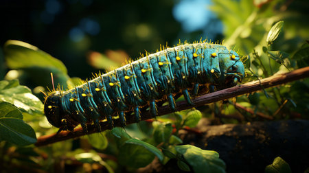 A caterpillar on a leaf in the sunlight, AI