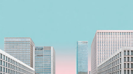 A captivating urban cityscape showcasing modern buildings against a serene pastel sky, perfect for projects focusing on contemporary architecture and design.