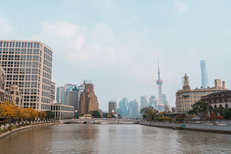 Shanghai; China - November 6 2024: the city seen the Hangpur river