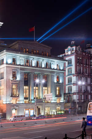 The Bund at night in Shanghai, China. The Bund is a major commercial and administrative center of Shanghai.