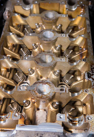Replacing a valve in a car engine. Valve block of the engine of the car.