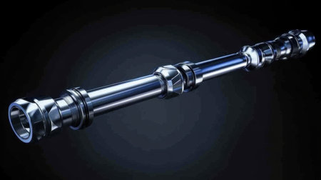 This striking 3D rendering showcases a metallic pipe with intricately designed threaded connectors. Ideal for industrial and engineering projects, this image highlights the aesthetic appeal and precision of modern design elements.