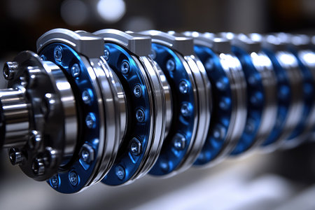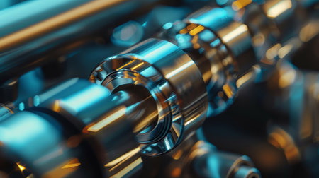 This high-resolution image showcases a close-up view of precision engine components featuring a shiny metallic finish, highlighting intricate details and craftsmanship.