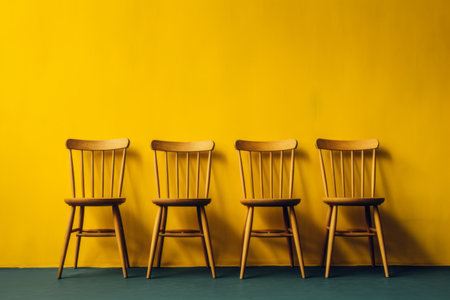 Sunny Seating: Vibrant Wooden Chairs on a Yellow Background