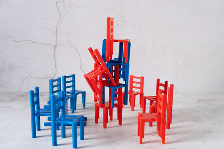 A conceptual photograph featuring furniture arranged in a visually appealing pattern, emphasizing their colors and designs. --ar 3:2 --v 6 Job ID: 42cd2905-7609-467e-a270-dcd65a837154