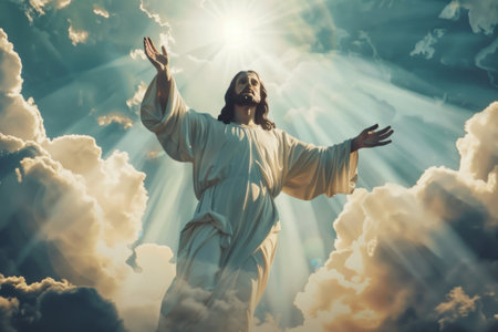 Jesus Christ in Heaven with rays of light religion concept