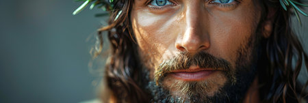 Closeup portrait of Jesus Christ with crown of thorns.
