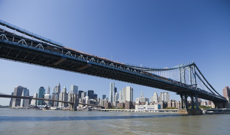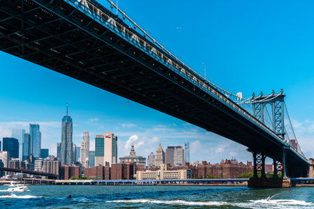 A panoramic view of Brooklyn Bridge and East river in New York, USA