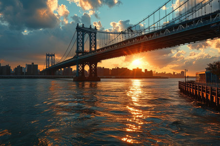 Golden hour photo of the bridge with dramatic lighting professional photography