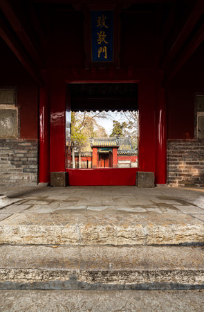 Red Entrance Gate Confucius Temple Qufu Shandong Province, China Chinese characters say Ru Sheng Gate
