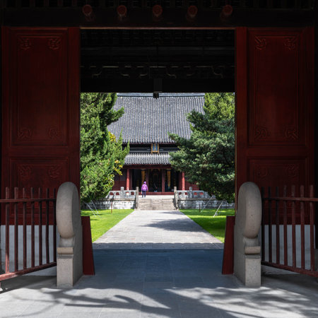 Confucius shrine in Nagasaki, Koshi-byo, Confucian temple in Nagasaki, Japan, Nagasaki prefecture, Museum of Chinese History and Palace Museum in a sunny day, Chinese shrine, Kyushu island region
