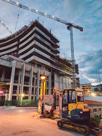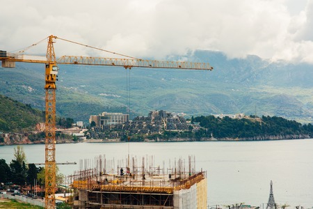 Construction of a multi-storey building. The crane is working. Budva, Montenegro.